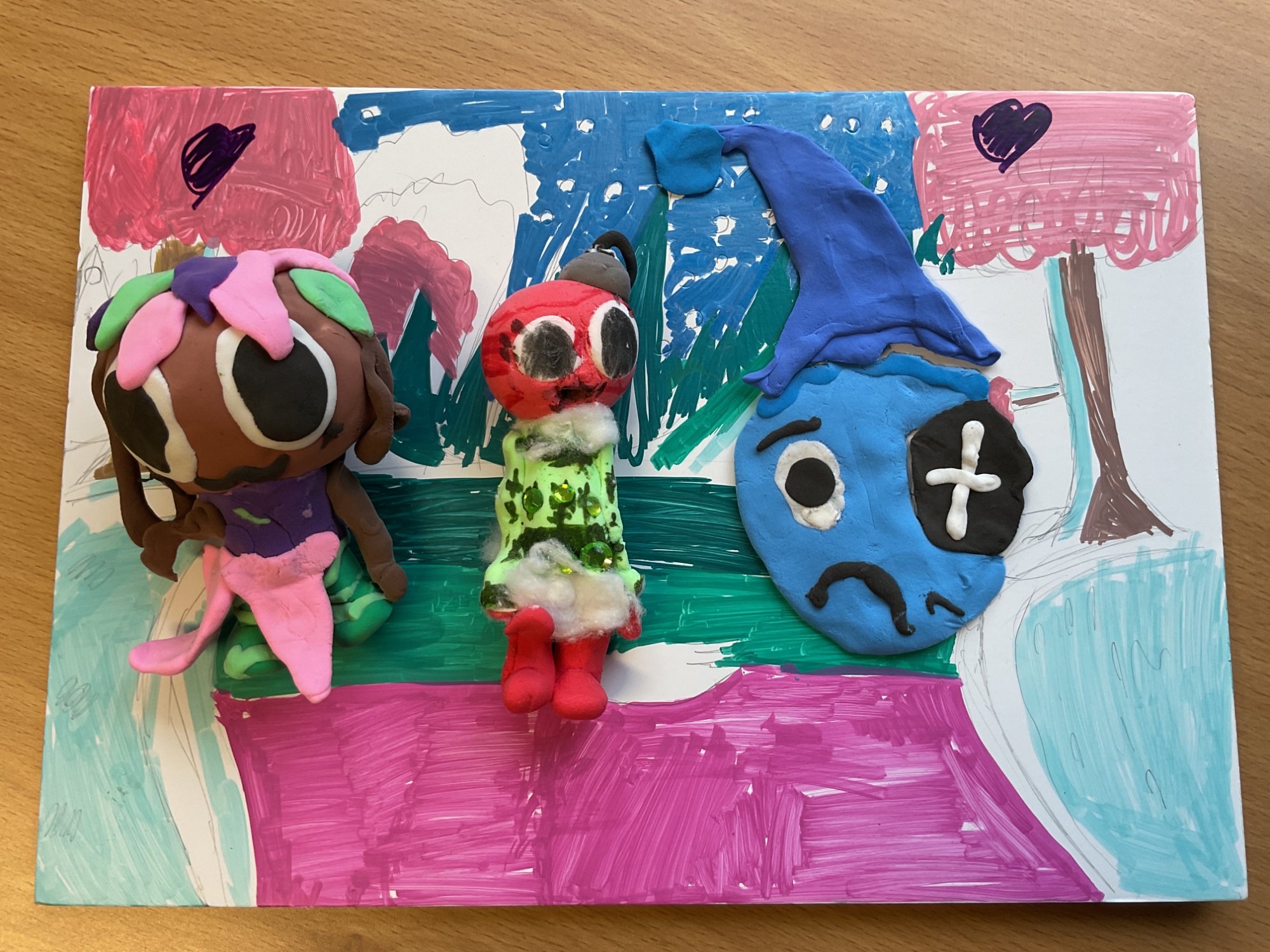 The girls created a landscape scene board and then made characters with air-dry clay to go on it. All the girls did really well and Lauren created an outstanding piece with no help from staff. She paid attention to detail, listened to instructions and understood. Well done Lauren!